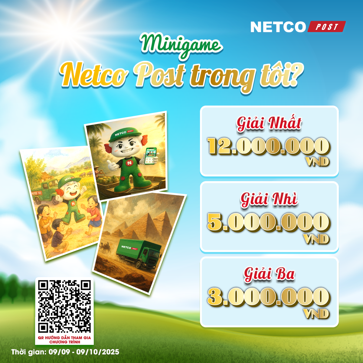 ▫️𝟎𝟗/𝟎𝟗 – 𝟎𝟗/𝟏𝟎/𝟐𝟎𝟐𝟓: Đăng tác phẩm dự thi lên Facebook cá nhân kèm hashtag hashtag #NetcoPosttrongtoi và kêu gọi bạn bè tương tác bài viết