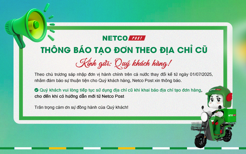 Để đảm bảo việc vận chuyển không bị gián đoạn và duy trì sự thuận tiện trong quá trình tạo đơn, Netco Post xin trân trọng thông báo: